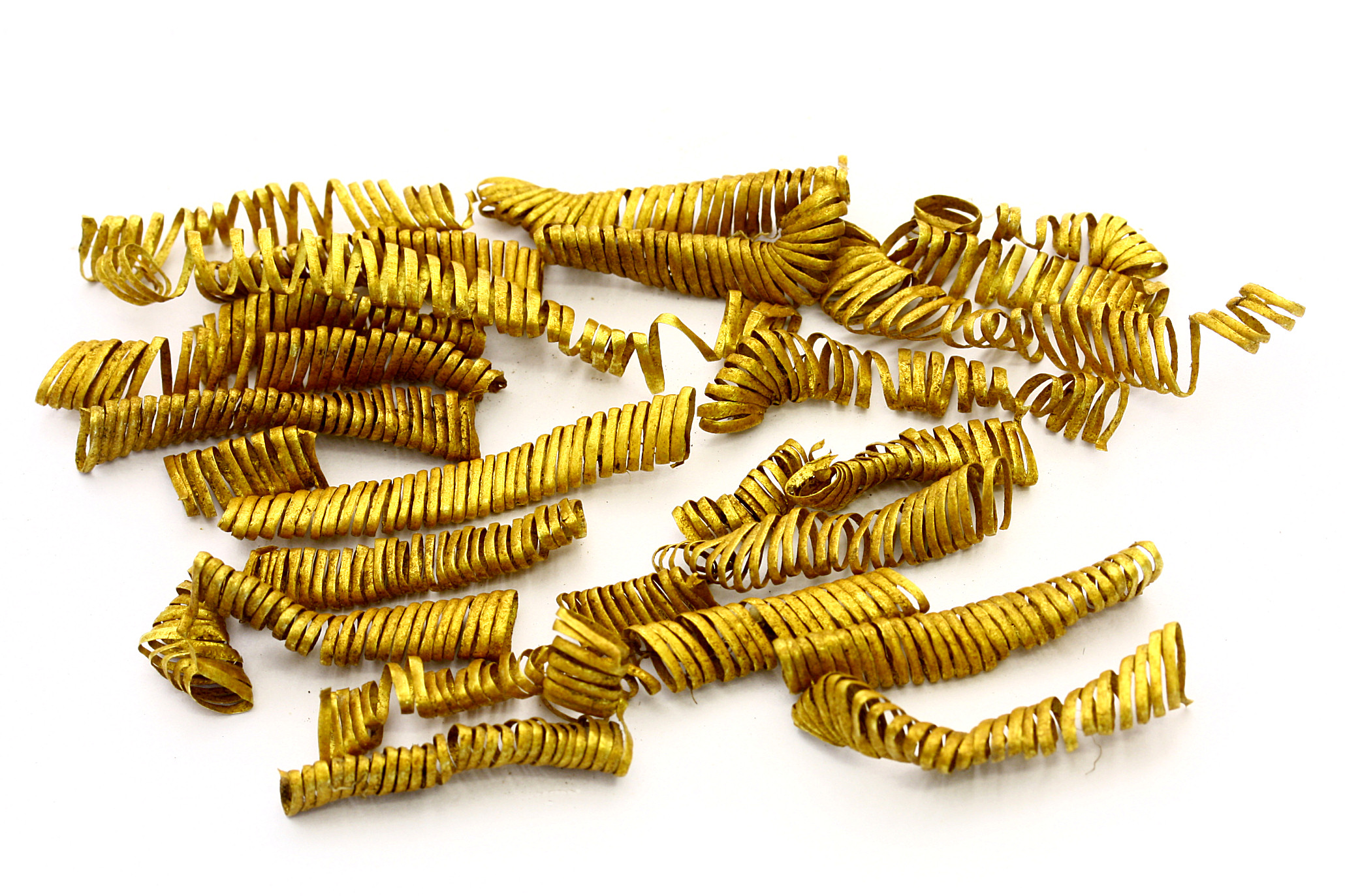 Det drejer sig om op i mod 2000 guldspiraler på op til tre centimeters længde og fragmenter af guldspiraler. De er fremstillet af meget tynd, flad guldtråd og daterer sig til bronzealderen i tidsrummet 900-700 f.Kr., forklarer museumsinspektør på Nationalmuseet Flemming Kaul.